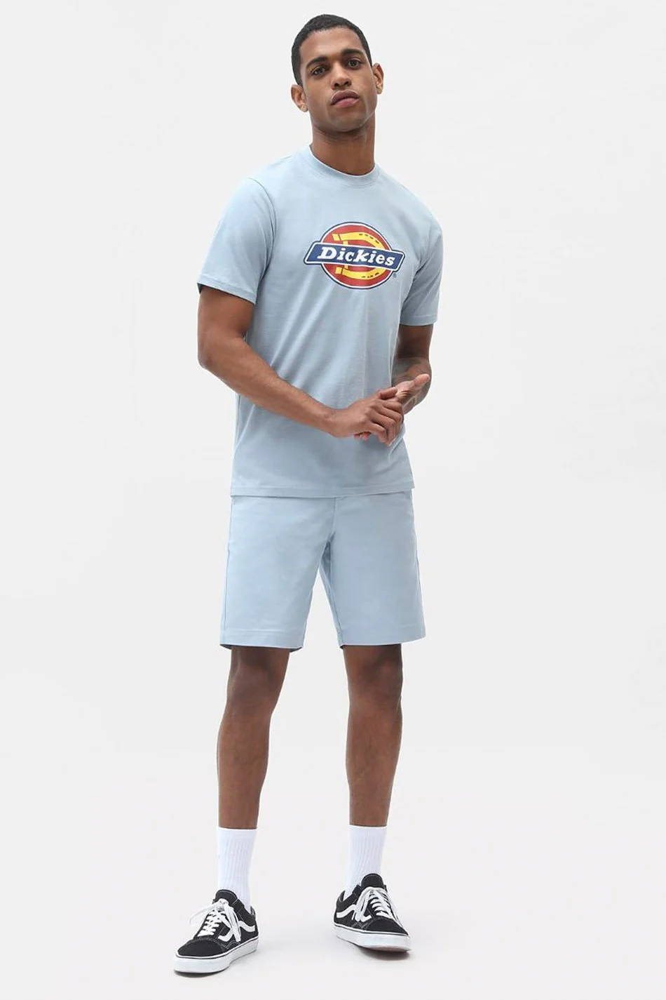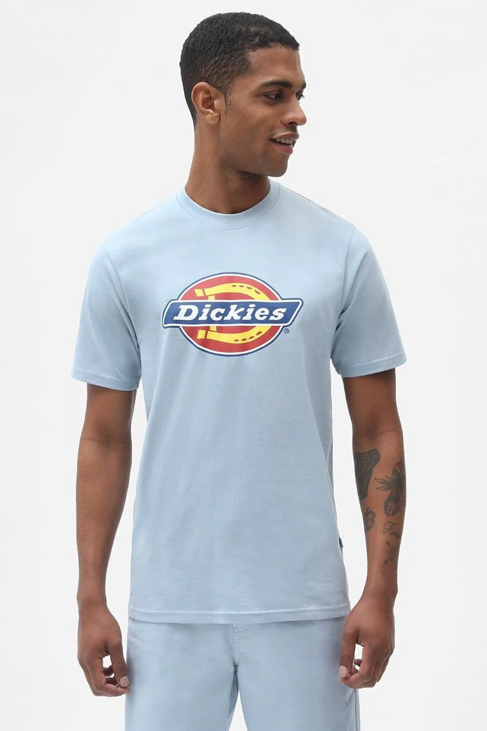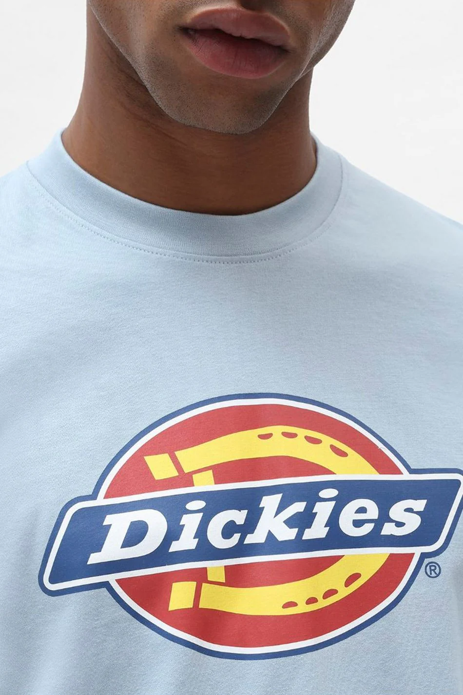 – La chemise à col rond et manches courtes – représente le logo Dickies imprimé fer à cheval sur la poitrine – coupe droite
