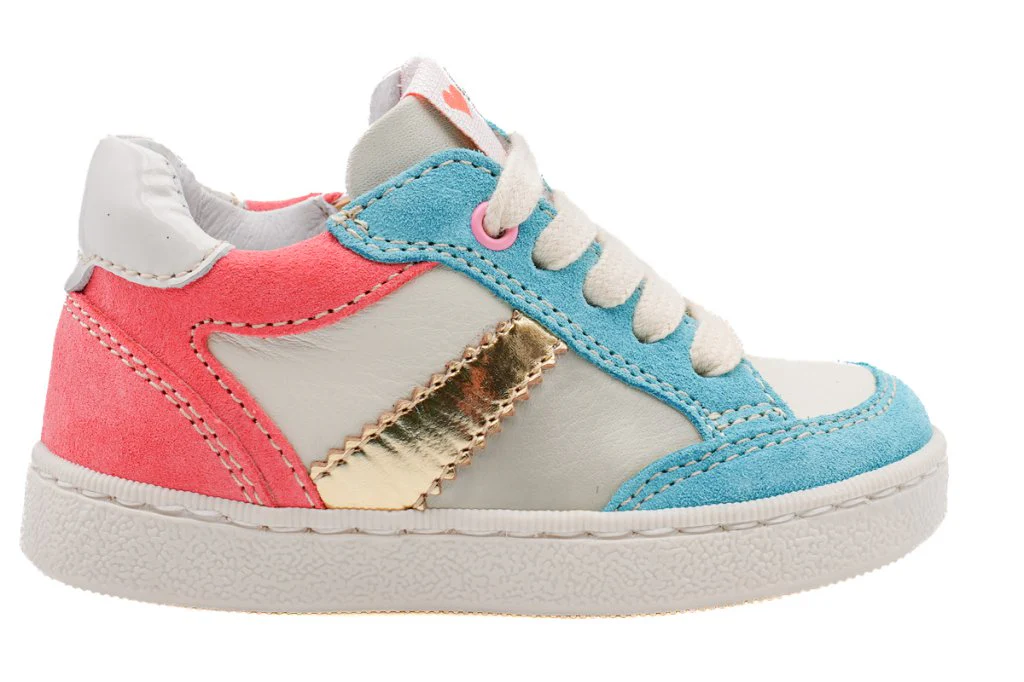 Chaussure petite fille à lacets et fermeture éclaire.Tige en cuir blanc. Doublure en cuir et semelle en caoutchouc