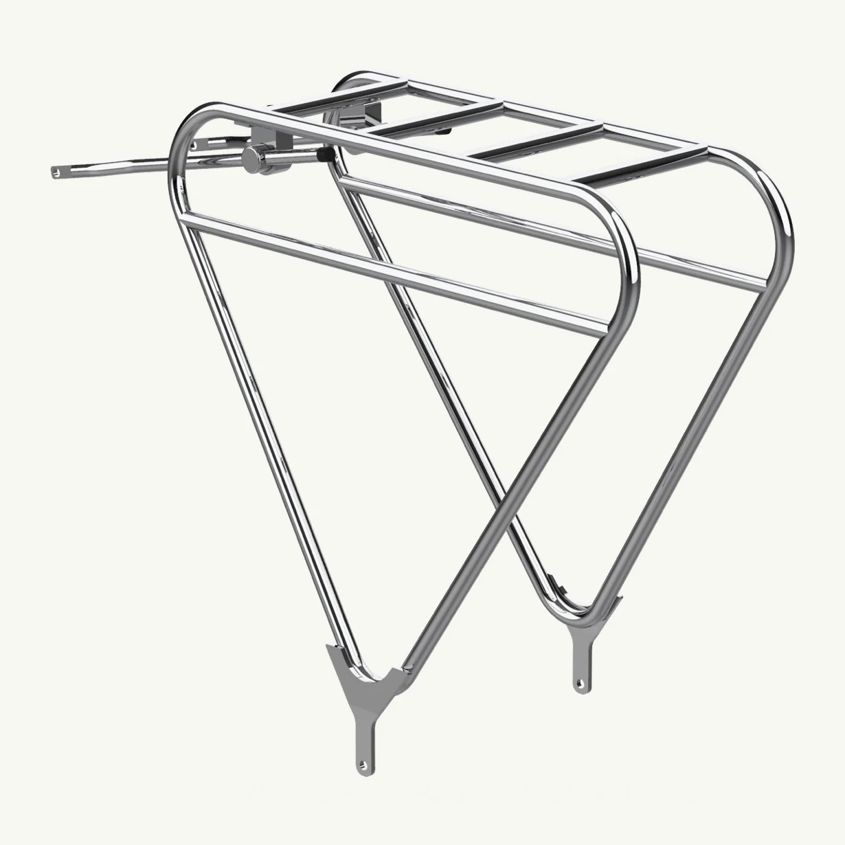 Le porte-bagages Voltaire en acier inoxydable est compatible avec un siège bébé.