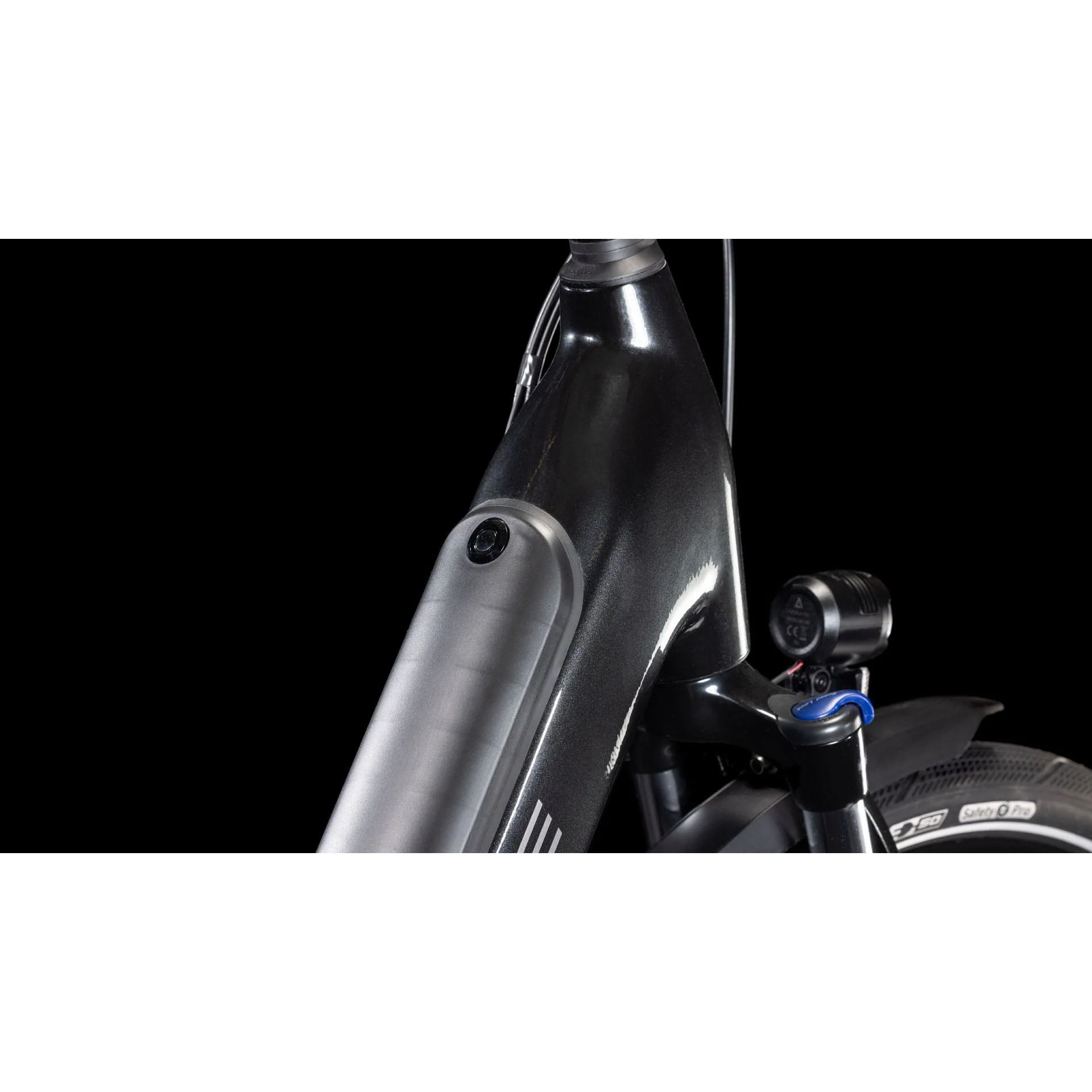 | A l’intérieur du cadre. La batterie se retire à l’aide d’une clé. |